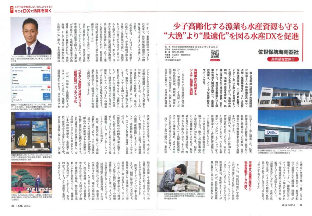 日本商工会議所発行のビジネス情報誌「月刊石垣」2月号 特集「今こそDXで活路を開く」にて、開発事業「救難位置通報システム(アルテミスプロジェクト)」をはじめ当社の取り組みを取り上げていただきました。