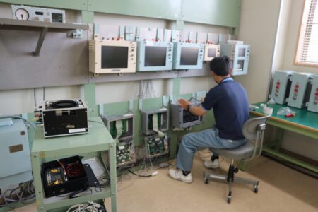 | その他 | ・オートコリメーター ・シンクロ標準発信機 ・シンクロ標準受信機 ・ジャイロコンパス動揺試験装置 ・ジャイロコンパス振揺試験装置 ・ジャイロコンパス旋回台 ・デジタルセオドライト ・バルサム接合用電気炉 ・ボール盤 ・大型乾燥炉 ・各種汎用計測器 ・基準重鐘圧力計 ・施盤 ・塗装ブース ・AISテスター ・その他 |