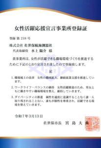 佐世保市女性活躍応援宣言事業所に登録されました。
